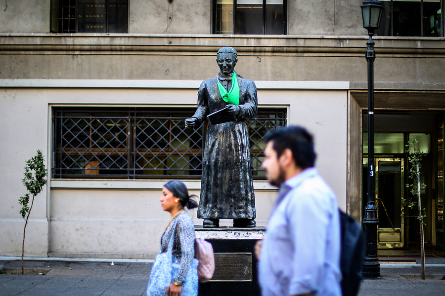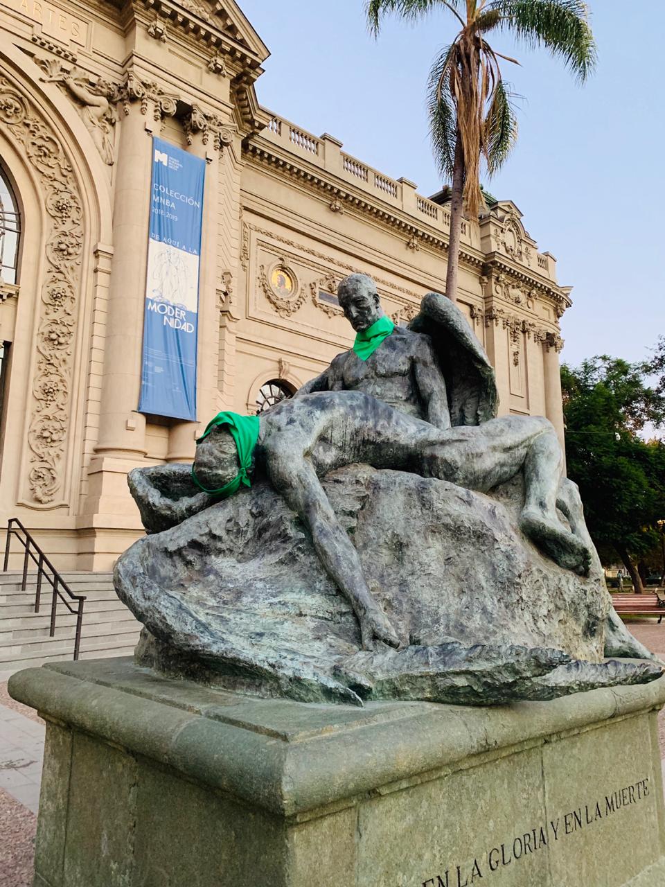 En relación al Día Internacional de la Mujer, diversas estatuas, monumentos e íconos de Santiago amanecieron con pañuelos verdes; el símbolo de la lucha por el aborto libre, consigna que siguen muchas mujeres a lo largo del país.