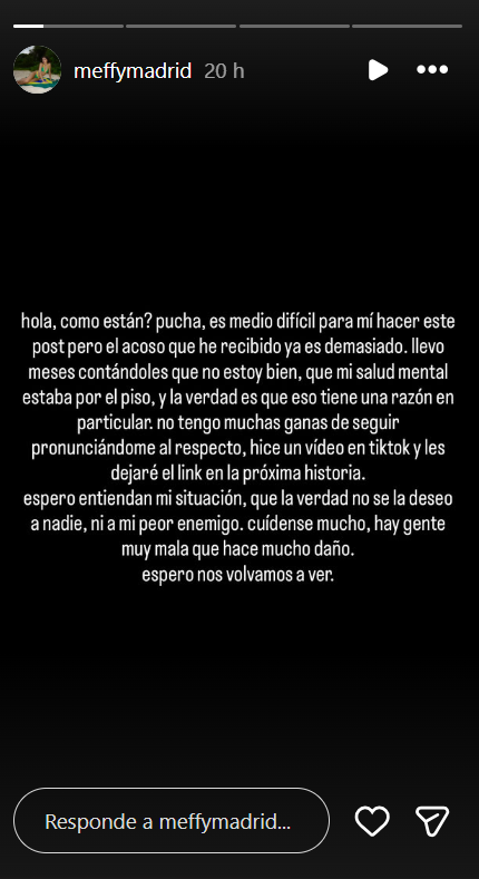 A través de su cuenta de TikTok, la joven que estudió derecho pero también es modelo e influencer, reconoció que utilizó otro nombre en redes, bajo el usuario de @meffyymadrid, debido a un periodo difícil durante su infancia.