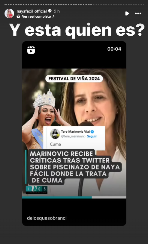 Naya no tardó en responder a esta "apreciación" de la columnista, compartiendo un reel sobre sus declaraciones.