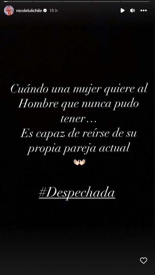 En una historia que subió a su Instagram, dejó sorprendidos a sus seguidores al compartir esta frase: "Cuando una mujer quiere al hombre que nunca pudo tener... es capaz de reírse de su propia pareja actual".