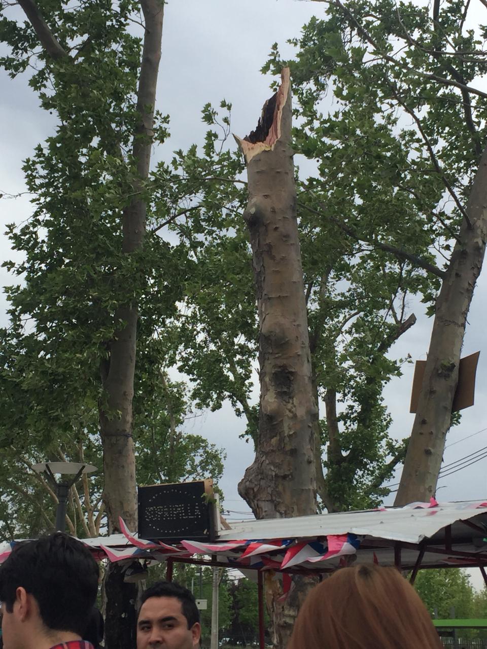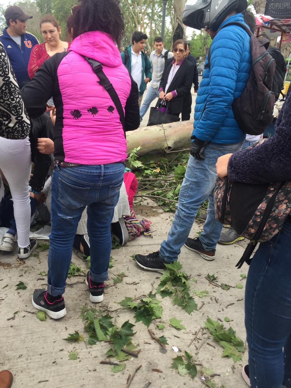 Un menor de 6 años resultó lesionado luego que parte de un árbol cayera en Av. Portales frente al mall Plaza Sur en la comuna de San Bernardo en la tarde de este martes.