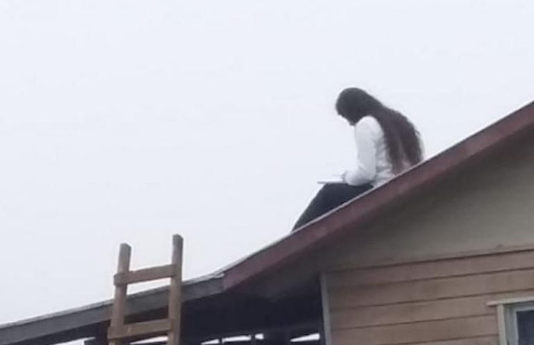 No es la única: Universitaria se sube al techo para tener internet y asistir a clases
