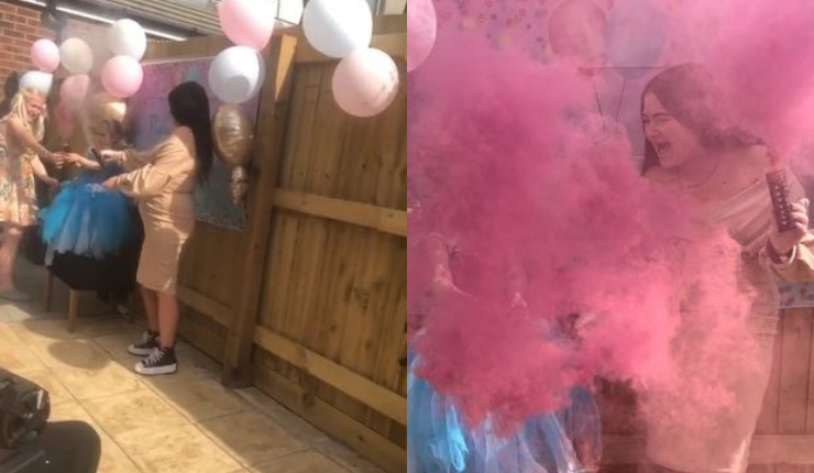 Mandy Morgan-Smith, oriunda de Reino Unido, esperaba celebrar sus 17 semanas de embarazo revelando cuál será el sexo de su guagua, pero las bombas de humo que utilizó la traicionaron.