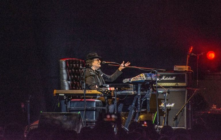 Los registros del show que compartieron sus fans en redes sociales se ve al artista argentino está sentado en un sillón de cuero y a su disposición tiene los teclados con los que toca clásico tras clásico de su extenso cancionero, todo en un escenario adornado con la Torre de Tesla que da nombre a la gira.