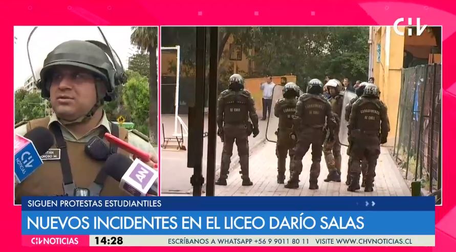 Cuatro estudiantes fueron detenidos tras los incidentes protagonizados por encapuchados durante la mañana de este lunes en el Liceo Darío Salas, obligando a personal de Carabineros a ingresar al establecimiento.