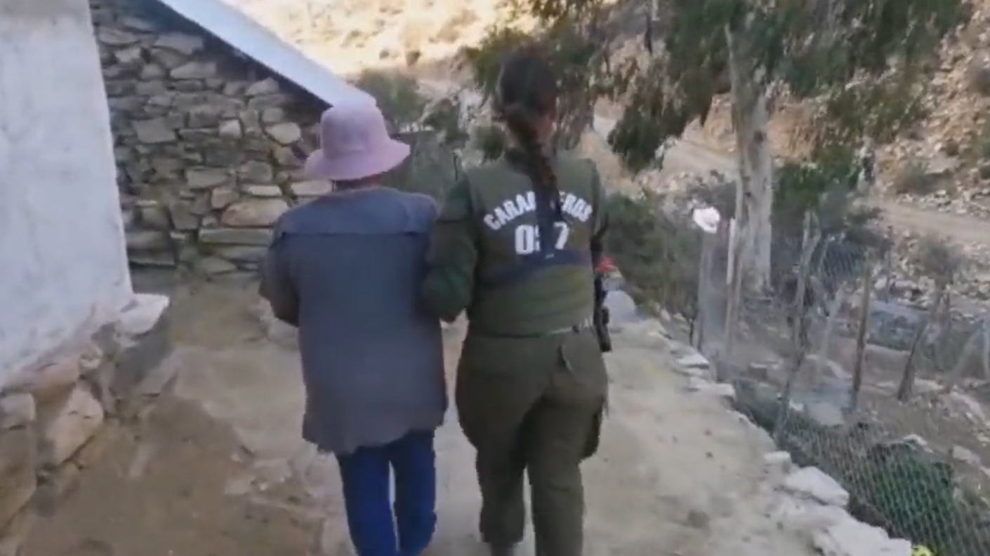 Después de recibir la orden de la Fiscalía local, personal del OS-7 se dirigió a la comunidad de Algarrobo de Hornillos, donde los uniformados sorprendieron a la adulta mayor, de nacionalidad chilena, en una quebrada aledaña al domicilio.