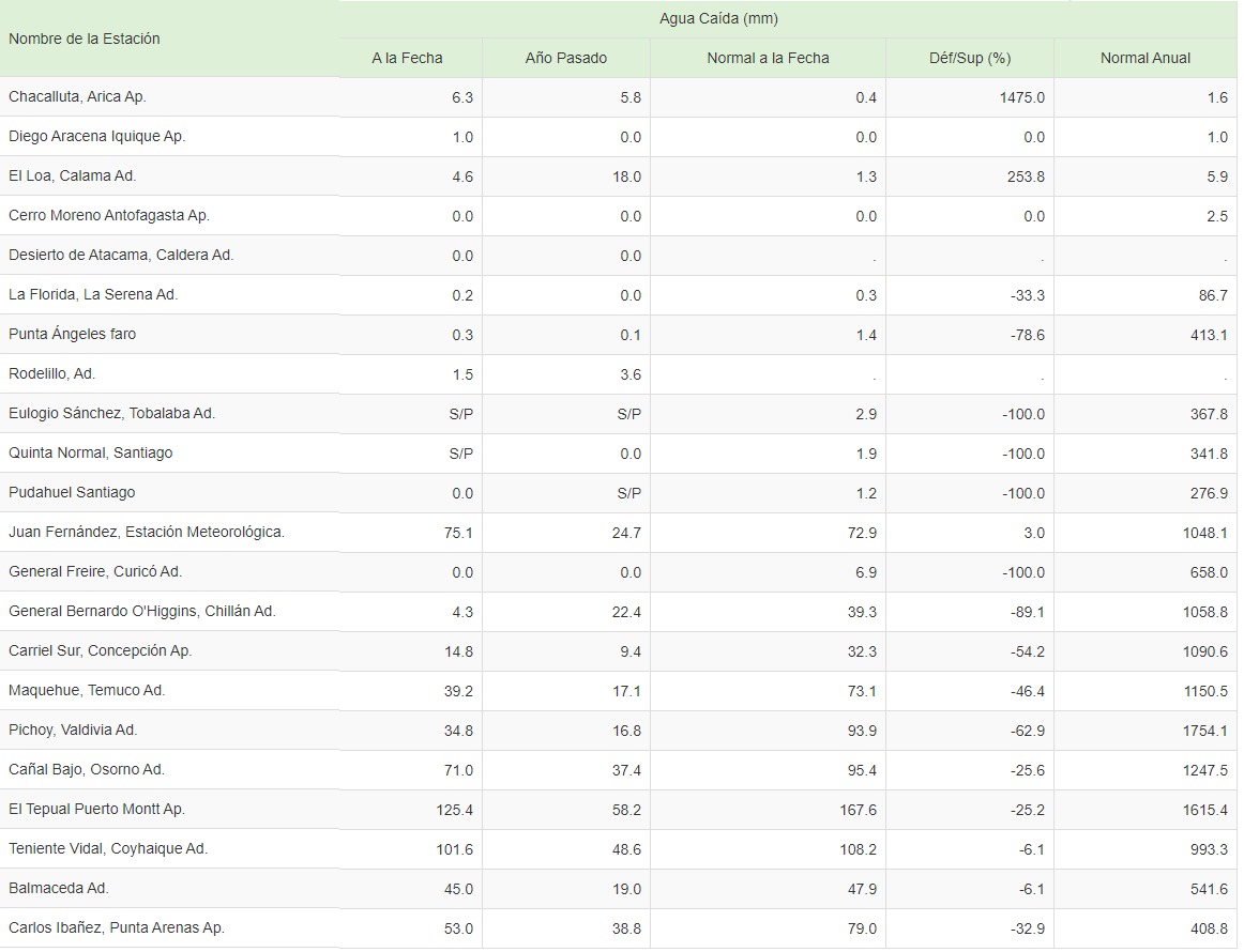 Aunque cuesta creerlo, en lo que va del presente año, Arica registra más agua caída que Chillán. El déficit de precipitaciones es evidente desde la región de Coquimbo hasta Magallanes con un promedio del 58%.