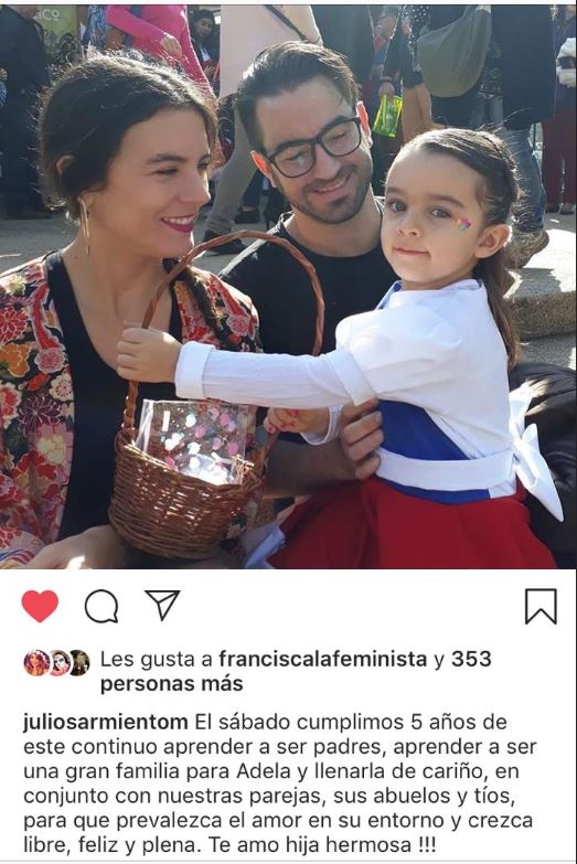 “El sábado cumplimos 5 años de este continuo aprender a ser padres, aprender a ser una gran familia para Adela y llenarla de cariño, en conjuntos con nuestras parejas, sus abuelos y tíos, para que prevalezca el amor en su entorno y crezca libre, feliz y plena. Te amo hija hermosa!!”, escribió.