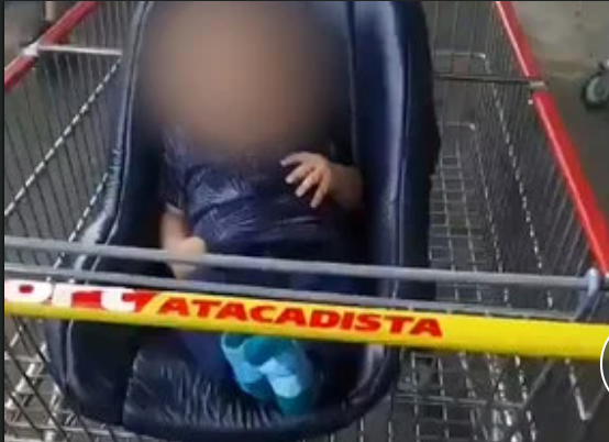 Perplejos quedaron los clientes de un supermercado en Brasil tras encontrarse con una guagua abandonada en un carrito de compras.