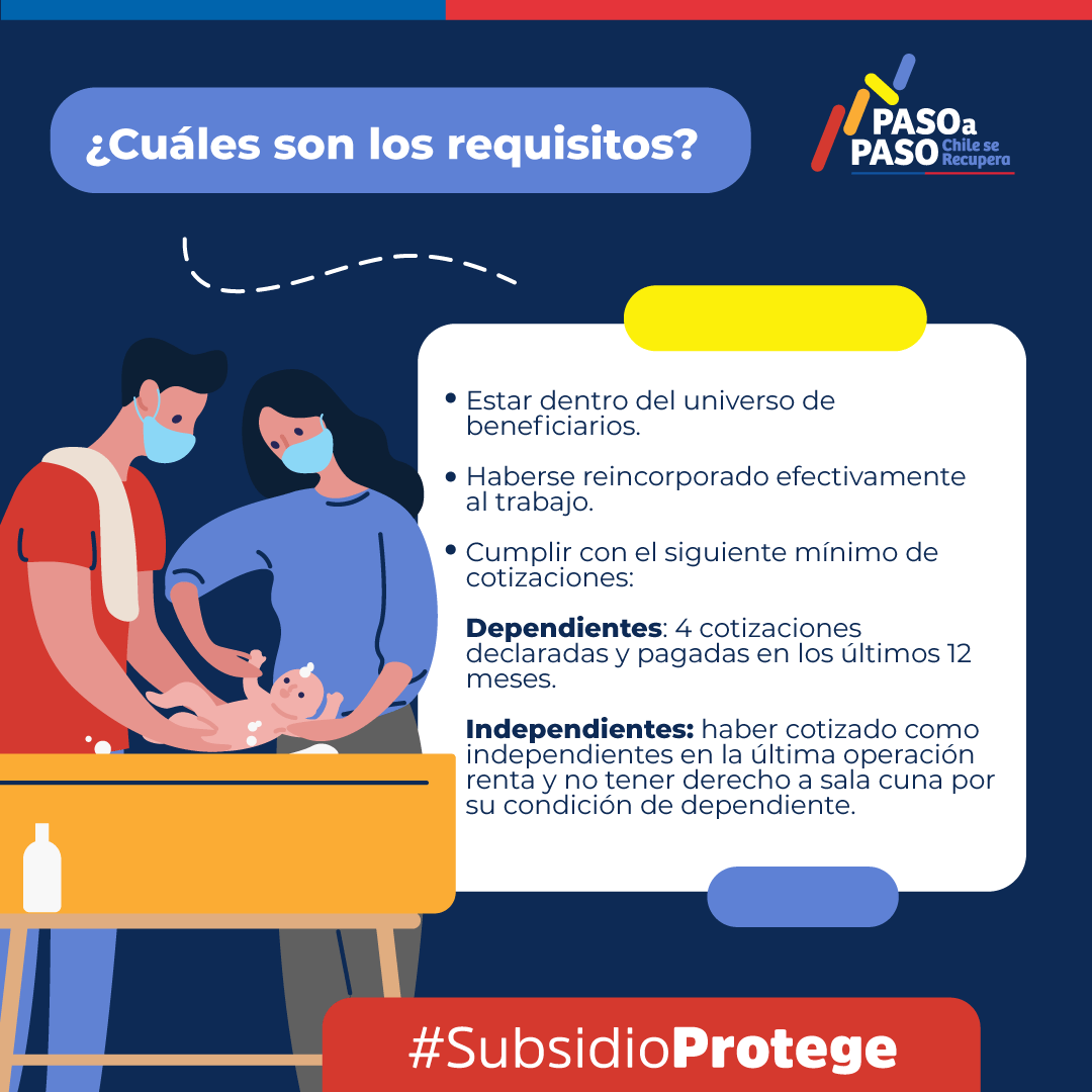Ser un(a) trabajador(a) beneficiario(a): Serán beneficiarios las madres trabajadoras, dependientes o independientes, que tengan a su cargo el cuidado de un niño o niña menor de dos años. Alternativamente, los padres trabajadores, dependientes o independientes, que tenga el cuidado personal de manera exclusiva, o aquél que se le haya otorgado el cuidado personal de un niño o niña menor de dos años.