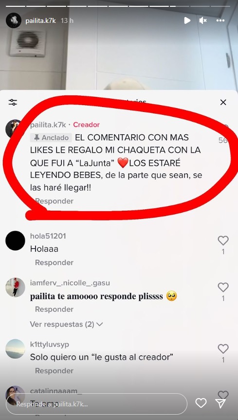 En una segunda historia de Instagram, Pailita reveló cuál es la preciada prenda que entregará a un fan, reconociendo que “la tenía guardada porque para mí fue un momento muy especial e importante en mi carrera”.
