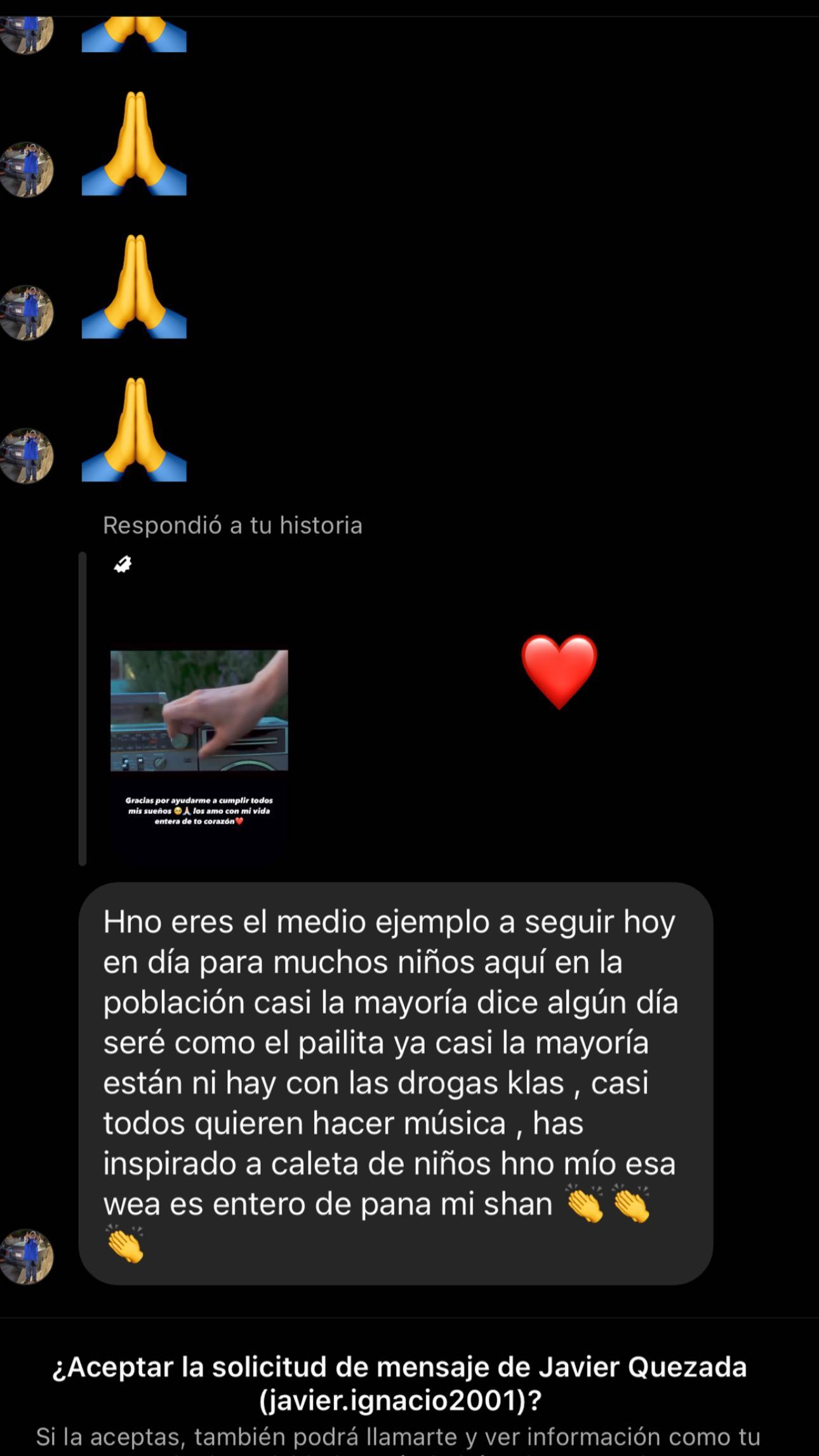 Luego, el fanático agregó que "ya casi la mayoría están ni ahí con las drogas, casi todos quieren hacer música. Has inspirado a caleta de niños, hermano mío. Esa wea es entero de pana mi shan".