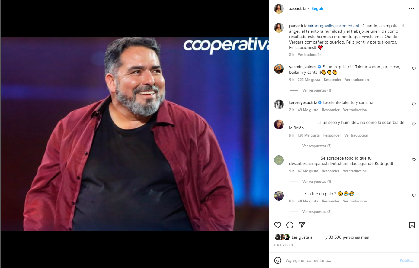 "Cuando la simpatía, el ángel, el talento la humildad y el trabajo se unen, da como resultado este hermoso momento que viviste en la Quinta Vergara compañerito querido. Feliz por ti y por tus logros", escribió en su cuenta de Instagram.