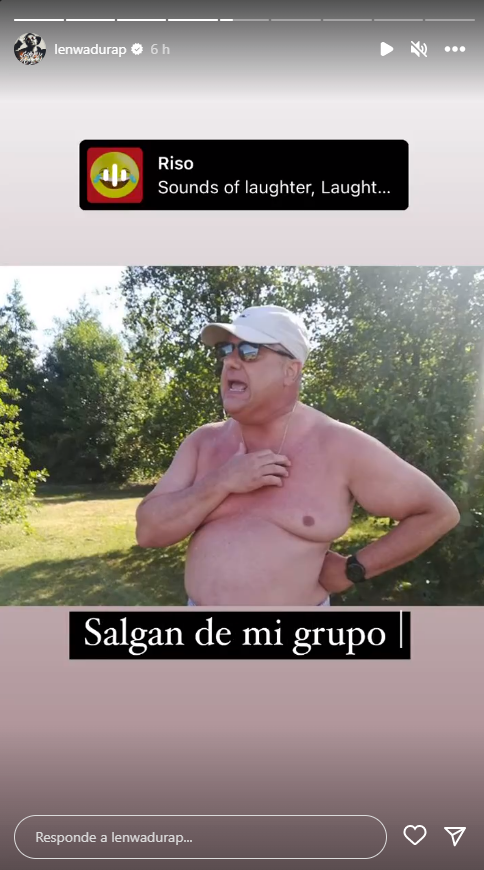 "Salgan de mi grupo", escribió el rapero sobre la postal, haciendo alusión a la recordada frase "salgan de mi jardín" del empresario. Además, incluyó un audio con risas en la misma storie.