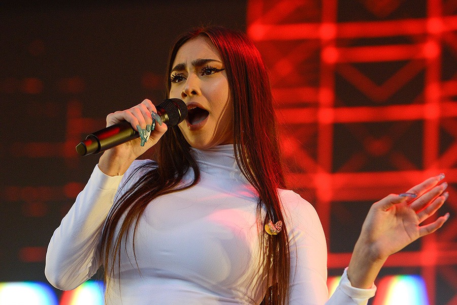 "Esta canción es para todas las mujeres que son igual que yo, que no les gusta enamorarse, que no quieren una relación, que quieren pasarlo bien", anunció antes de presentar precisamente su canción más reggaetonera, "No te enamores", y que tuvo de invitado al productor DJ Luian.