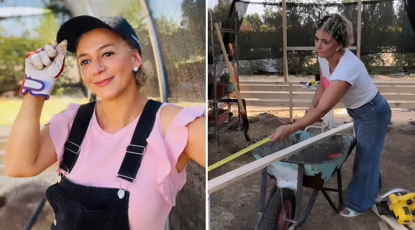 se le ve martillando, aserruchando y taladrando madera, la comediante