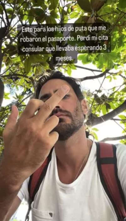 "Esto es para los hijos pu... que me robaron el pasaporte. Perdí mi cita consular que llevaba esperando tres meses", reveló el ex protagonista de Vuelve Temprano de 33 años.