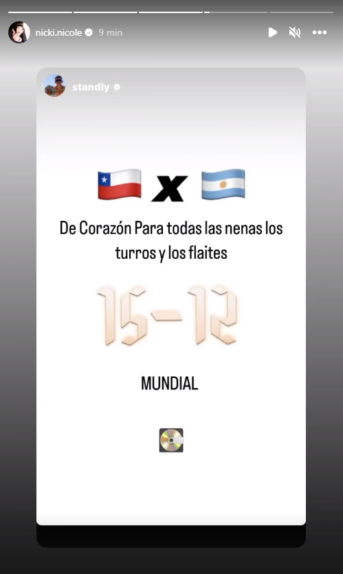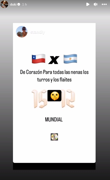 "De corazón para todas las nenas, los turros y los flaites", escribió el artista argentino en su historia, mientras suena la canción Marisola de fondo y se ven banderas de Chile y Argentina.