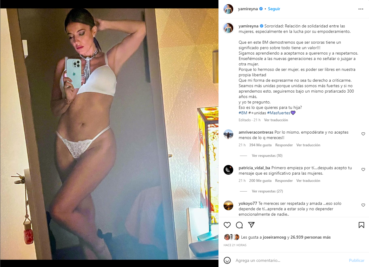 "Parte por creerlo tú misma": Yamila Reyna recibe ola de crueles comentarios en post sobre el Día de la Mujer