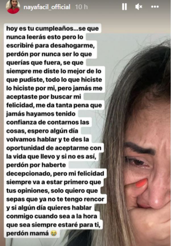 La influencer Naya Fácil utilizó su cuenta personal de Instagram para escribir un triste mensaje a su mamá en el día de su cumpleaños.