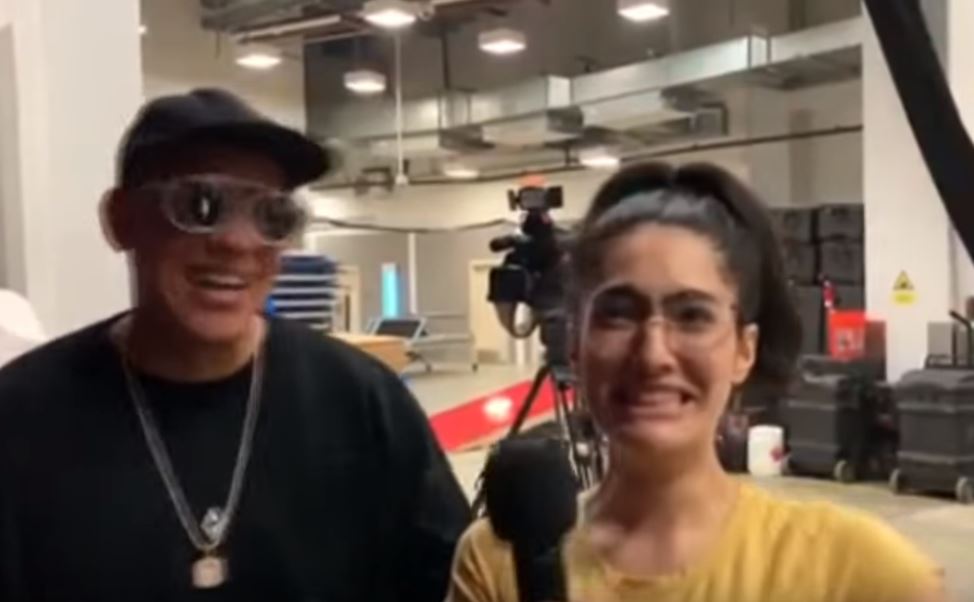 A pesar de que la profesional titubeaba por estar frente a uno de sus ídolos, el artista la entendió e incluso le prestó su apoyo. “Aquí estamos apoyándote a ti mi reina, ¿estás comenzando verdad?”, le dijo entre risas.