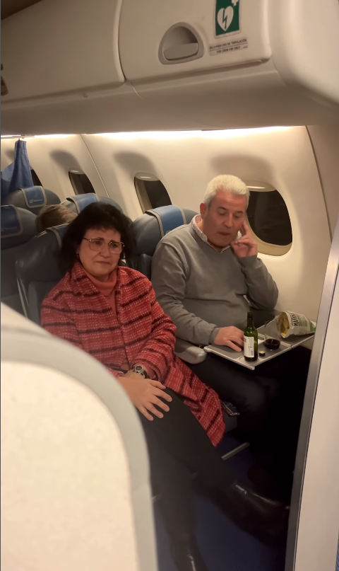 En las imágenes, que rápidamente se viralizaron en TikTok e Instagram, se puede ver a los padres de Jordi Jacas sentados en primera fila, quienes se sorprenden al escuchar las palabras de agradecimiento de su hijo por el altavoz de la aeronave.