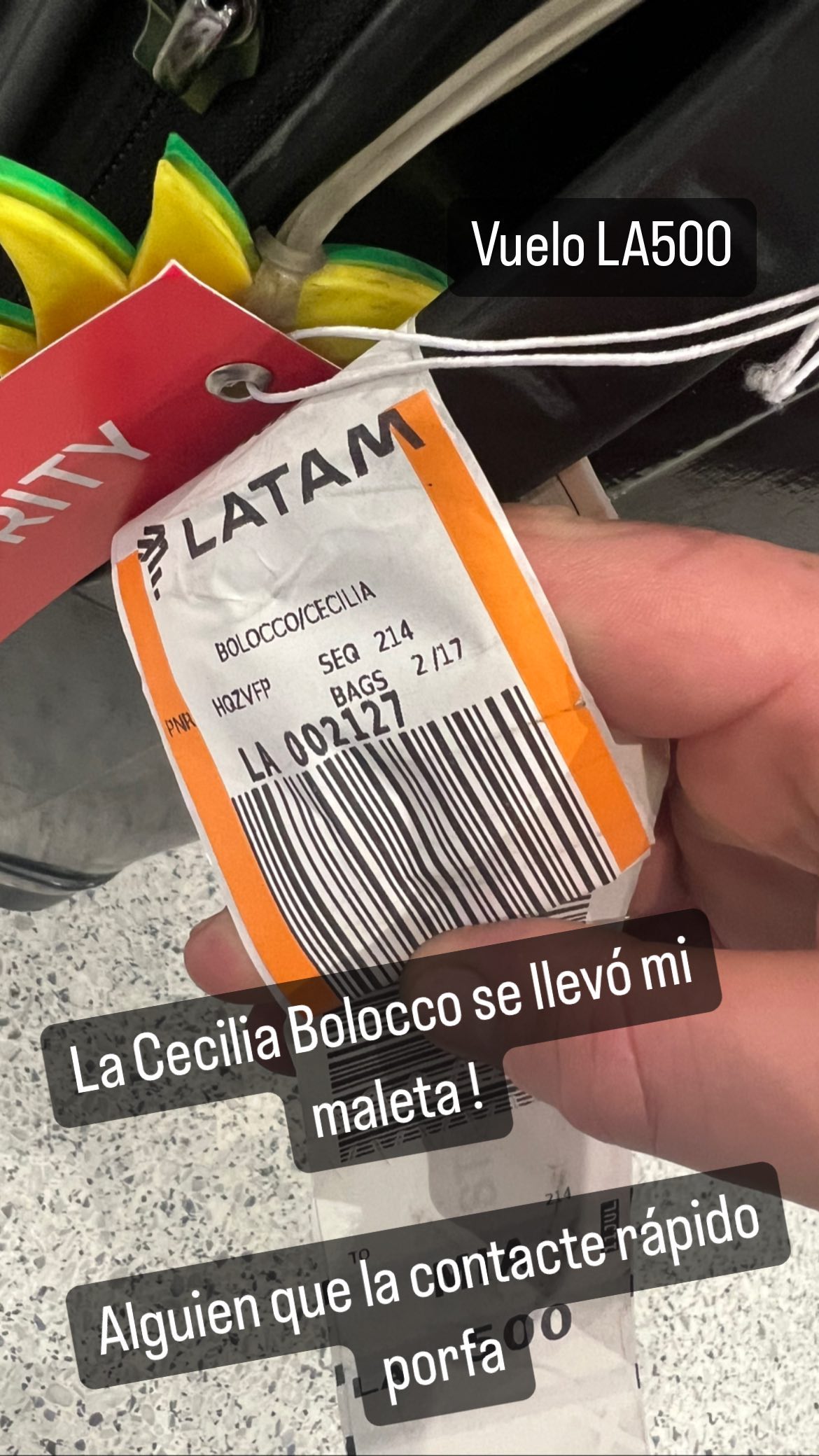 “¿Alguien tiene el contacto (de Cecilia Bolocco), en serio? Porque esta señora tiene la misma maleta que yo (…) Pero ella, por irse primero, porque se cree bacán, se llevó mía. Qué paja… ¿Qué hago ahora? Paula (su esposa) se puede poner bikini, ¿pero yo qué me pongo?”, alegó en su cuenta de Instagram.