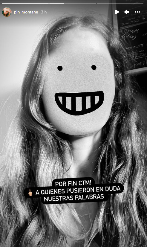 La intérprete publicó una historia en su cuenta de Instagram donde hizo referencia a la sentencia, junto a una foto con filtro sonriente y la siguiente frase: "Por fin ctm!", seguido por un emoji que muestra el dedo del medio, como una crítica a "quienes pusieron en duda nuestras palabras".