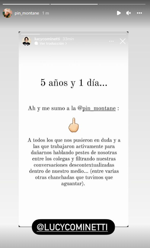 Al mismo tiempo, la actriz Lucy Cominetti -quien fue parte de la trilogía de Qué pena tu vida- se sumó a lo realizado por Josefina y también publicó una historia que incluye el mismo emoji.
