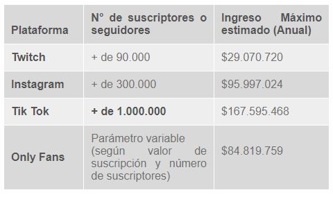 Y debido a que no existen registros centralizados de las actividades que se realizan en cada red social, indagaron en cantidad de seguidores, actividad diaria y potenciales fuentes de ingreso.