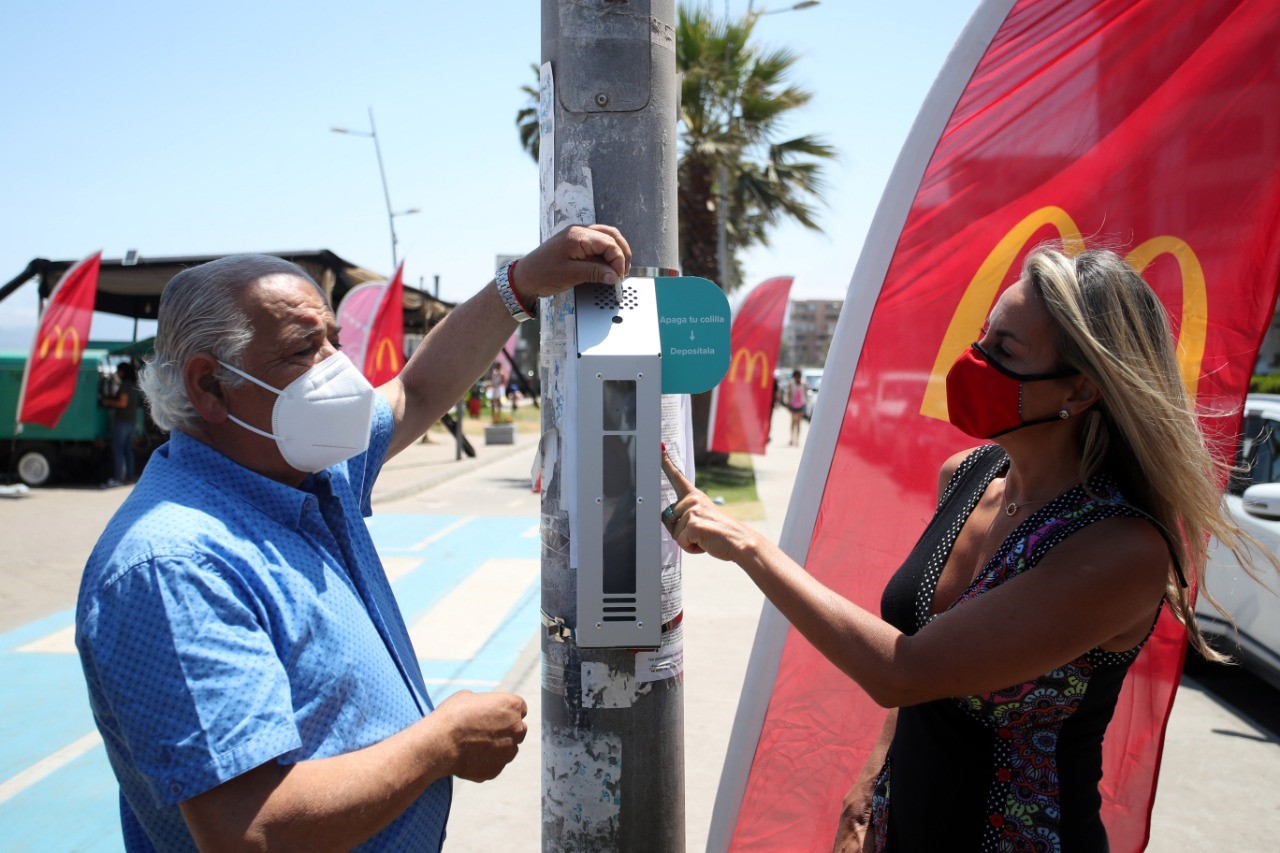 Lee también: Sobrepeso y obesidad: Una de cada 11 muertes en Chile es atribuible a esta enfermedad"Como municipio veníamos, desde 2019, implementando medidas para la protección y limpieza de nuestro borde costero, gracias a una histórica alianza que tenemos con la marca McDonald’s. Agradecemos a la empresa por su interés de aportar en esta línea, porque justamente una de las cosas más contaminantes en la playa son las colillas de cigarrillo. Con la nueva regulación enfocada en los fumadores, esta importante acción viene a reforzar el trabajo que ya estábamos realizando para cuidar nuestros espacios públicos", señaló Roberto Jacob, alcalde de La Serena.