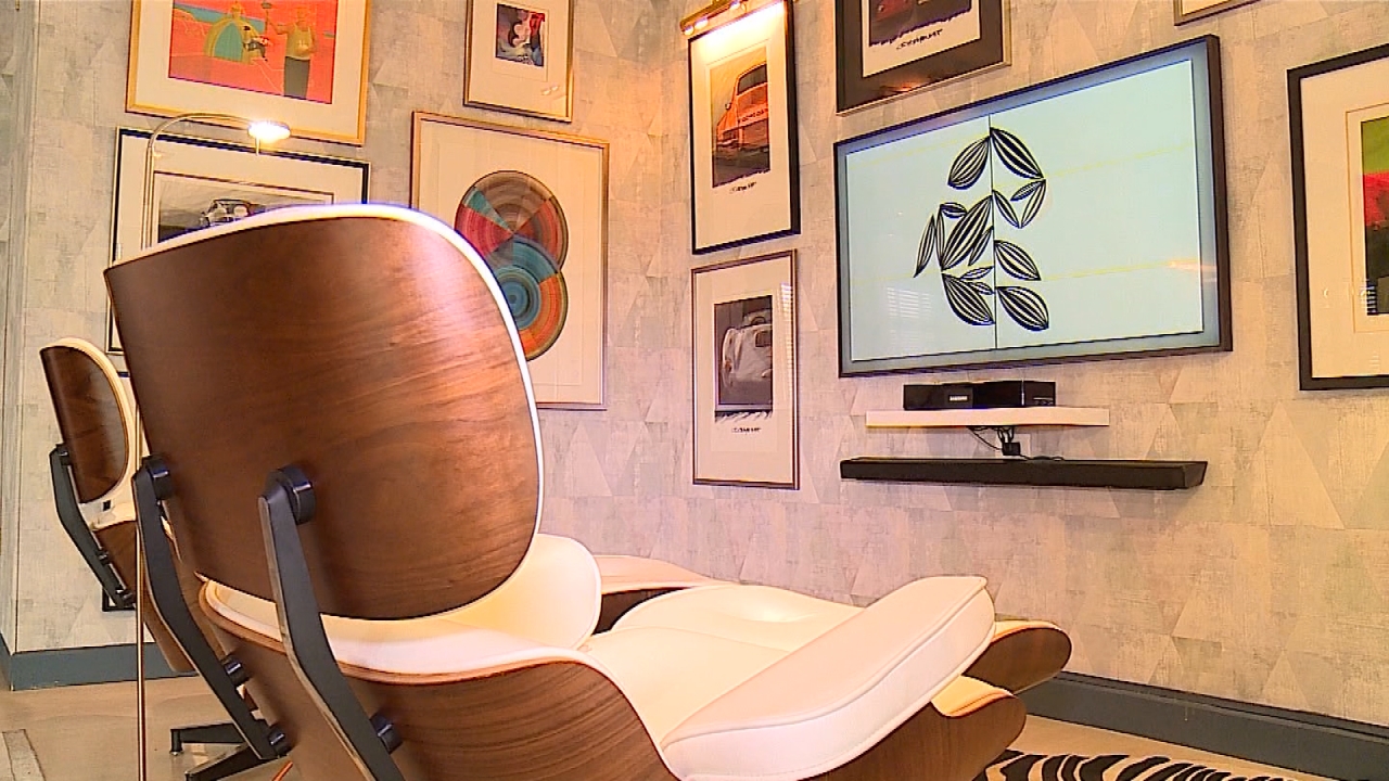 Marcelo Varetto, arquitecto, explica esta modalidad: “Es cada día más solicitado, como hay menos espacio, las casas son más pequeñas, los departamentos, que el televisor se integre al espacio familiar. Hicimos una composición de cuadros de distintos autores y el televisor es uno más de ellos”.