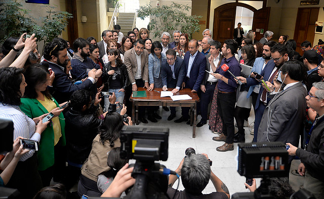El libelo fue firmado por los diputados Gabriel Boric (Convergencia Social), Manuel Monsalve (PS), Daniela Cicardini (PS), Alejandra Sepúlveda (FRVS), Catalina Pérez (RD), Camila Rojas (Comunes), Tomás Hirsch (PH), Gabriel Silber (DC), Alexis Sepulveda (PR), Ricardo Célis (PPD) y Boris Barrera (PC).