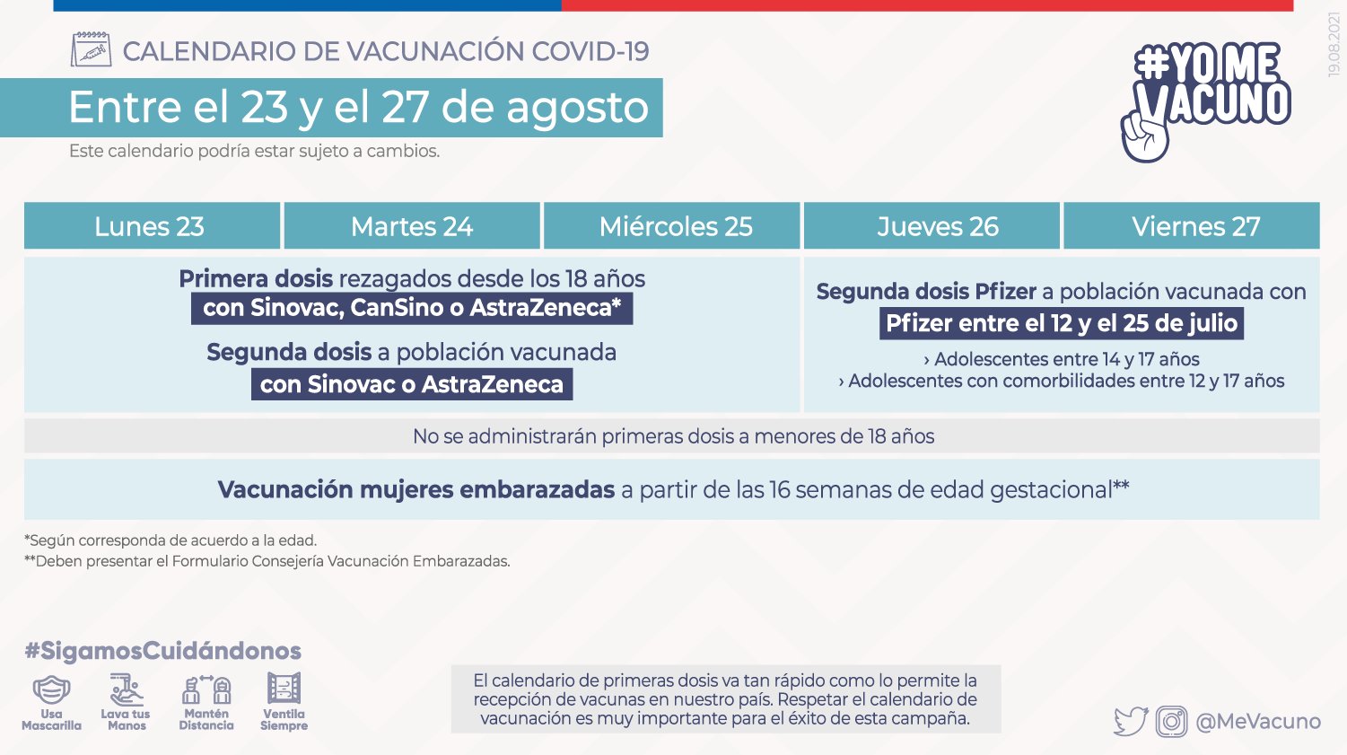 Finalmente, cabe recordar que durante toda esta semana no se administrarán primeras dosis a menores de 18 años.