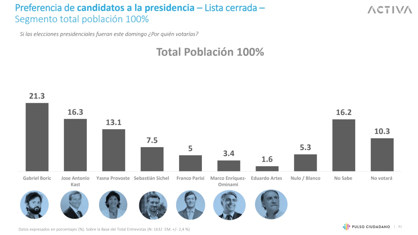 Pulso Ciudadano: Boric lidera las preferencias, Kast se consolida en segundo lugar y Provoste supera a Sichel - Chilevisión