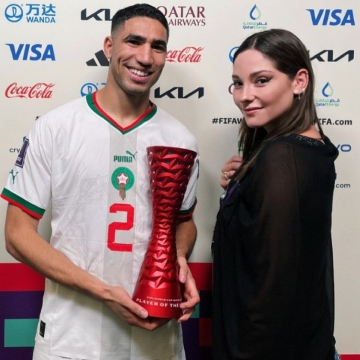 ¿Qué hizo?, Kel le entregó el premio de mejor jugador al futbolista tras el partido entre Marruecos y Canadá, quien lo recibió con una gran sonrisa en su rostro.