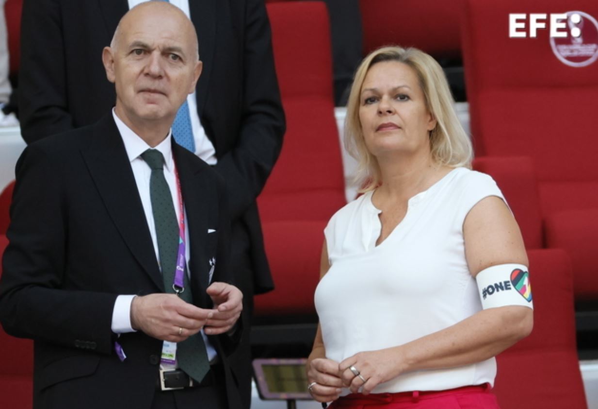 Sumado a esto, la ministra del interior de Alemania, Nancy Faeser, fue capturada en las gradas del estadio luciendo un brazalete arcoíris en su brazo con la frase "One Love".