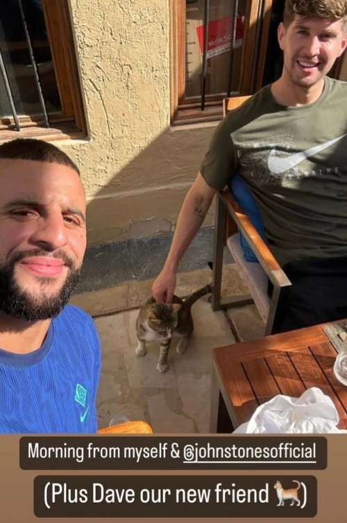 Kyle Walker y John Stones regresaron a su país con "Dave" felino que estuvo deambulando varios días por el hotel de concentración de los británicos.