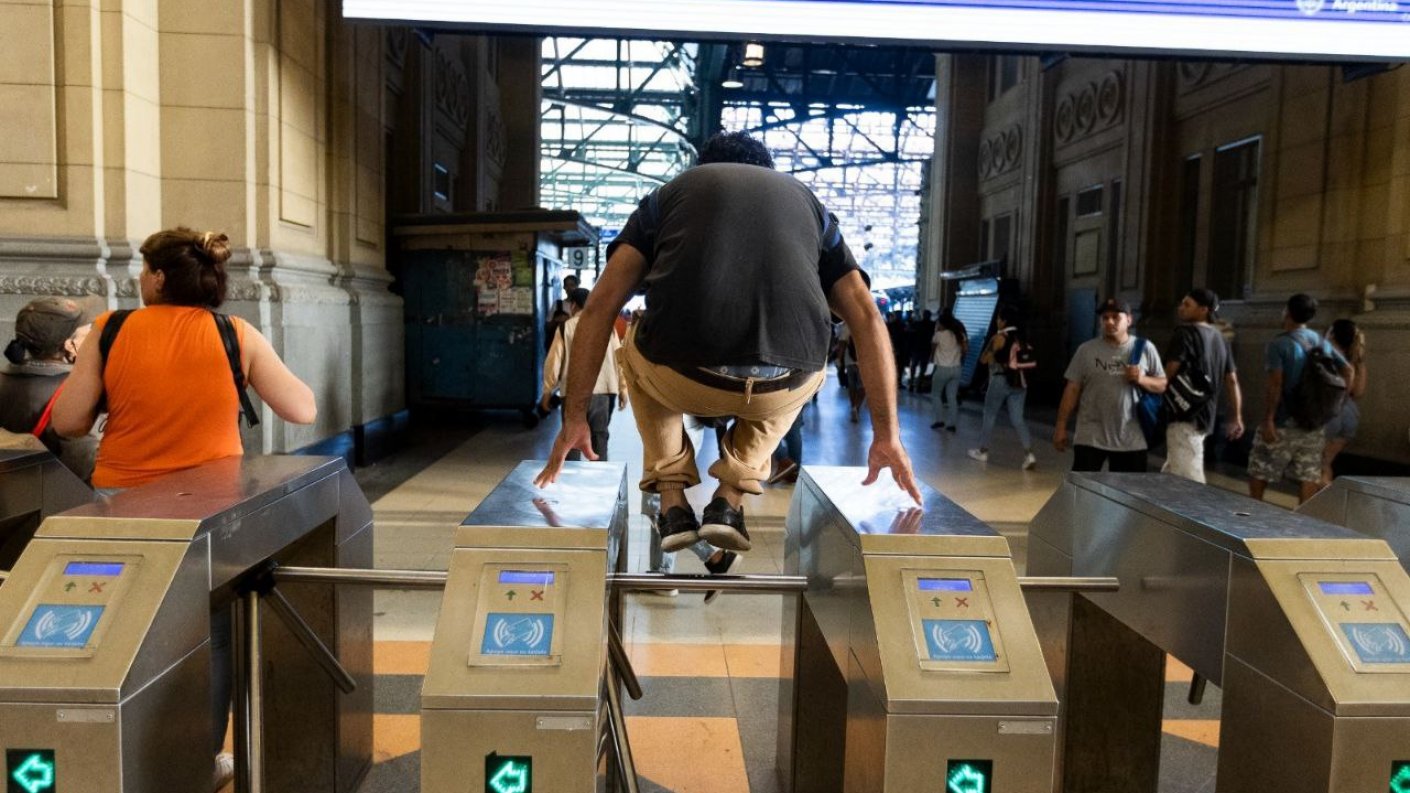 evadir el pago de la tarifa al saltar los torniquetes (molinetes) en las estaciones de transporte público, como el
