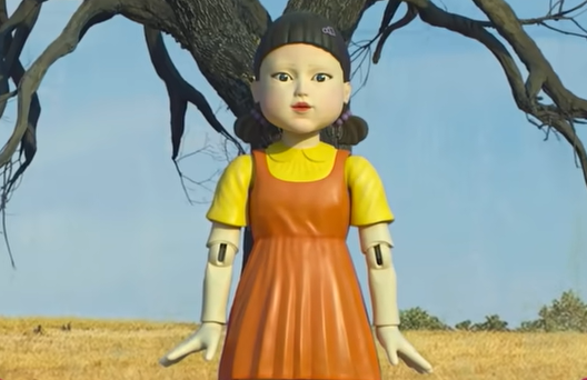 Los jugadores pueden avanzar mientras la figura, que canta una aterradora canción, no los vea. De lo contrario, serán eliminados. Motivados por el millonario premio, los 456 comienzan a caminar, pero de pronto uno de ellos cae abruptamente al piso tras escucharse un fuerte estruendo.