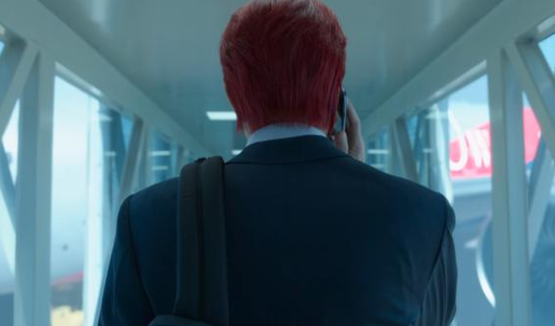 Motivado por averiguar quién está detrás de la competencia, corre hacia donde están, pero ya es demasiado tarde. El reclutador ya se fue. Le dice al hombre que no responda la invitación y le quita la tarjeta de presentación.