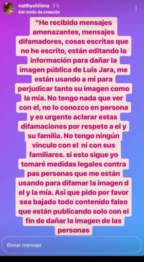 Además, acusó que se estaba editando la información entregada por ella, usando su imagen para difamar la de Luis Jara.