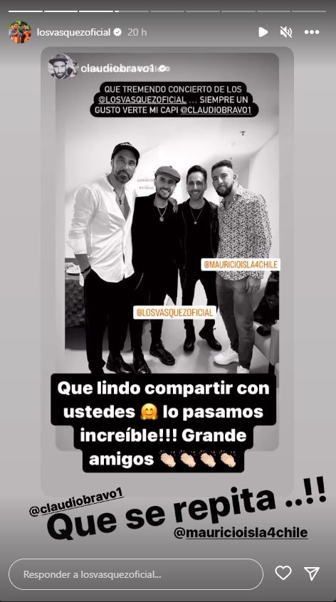 La historia fue reposteada por Claudio, quien señaló que "qué lindo compartir con ustedes, lo pasamos increíble, ¡grande amigos!". A su vez, Los Vásquez también republicaron el registro en su perfil. "¡Que se repita!", agregaron.