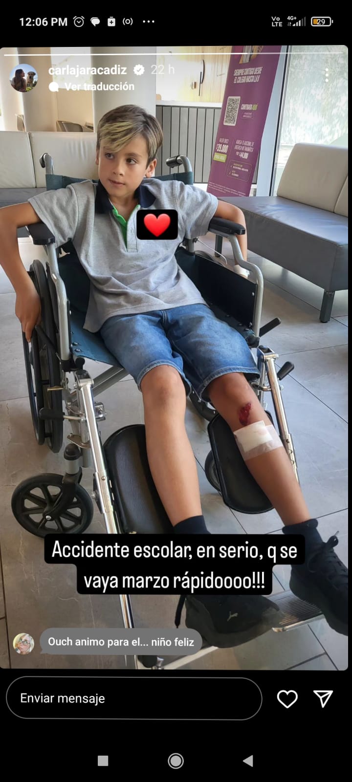 La animadora subió una fotografía a través de las historias de su cuenta de Instagram donde aparece su hijo en una silla de ruedas y señaló: