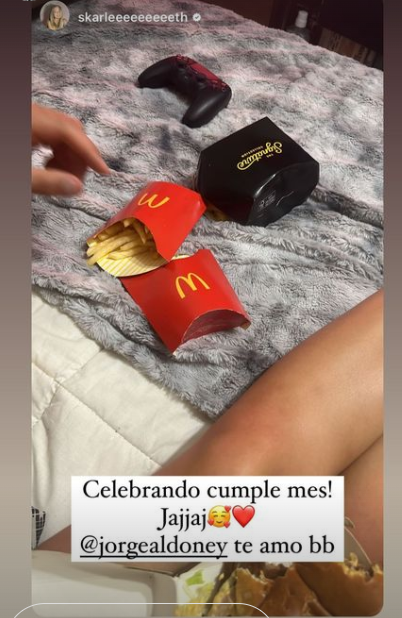 "¡Celebrando cumple mes!, te amo bb", escribió Skar en su cuenta de Instagram mientras mostraba que estaba festejando junto a Jorge comiendo hamburguesas. Esta fecha pactó el noviazgo oficial de los ex chicos reality, de cuando el Mister Universo Chile le dio un anillo y flores, no obstante, desde el inicio de su amistad los fanáticos de Gran Hermano esperaban que terminaran siendo la pareja inseparable que son hoy en día.