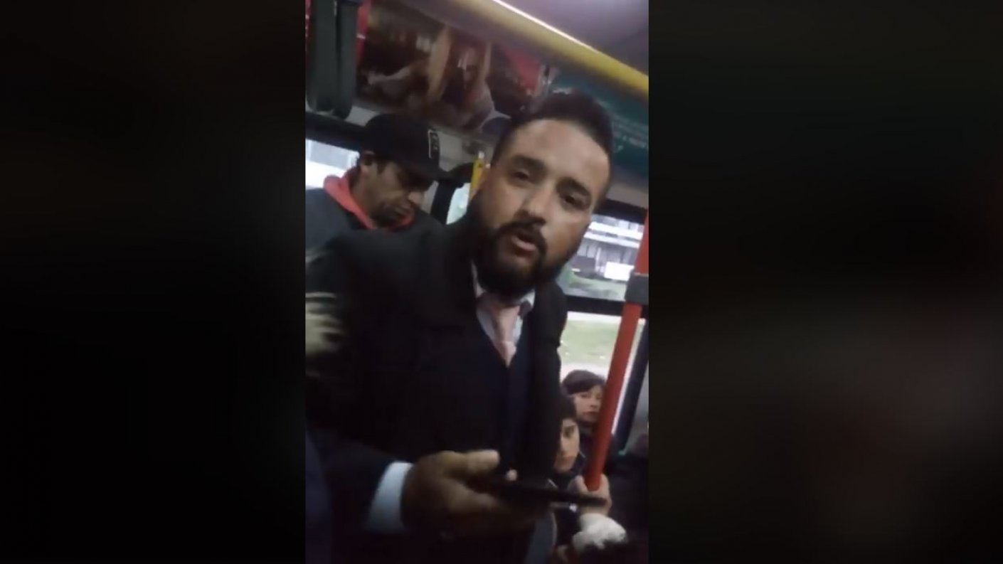 "Este caballero acaba de tratarnos mal a toda la gente acá en la micro. Me pasó a llevar a mí y a mi hijo", señaló la mujer mientras lo grababa, según informó radio Cooperativa.
