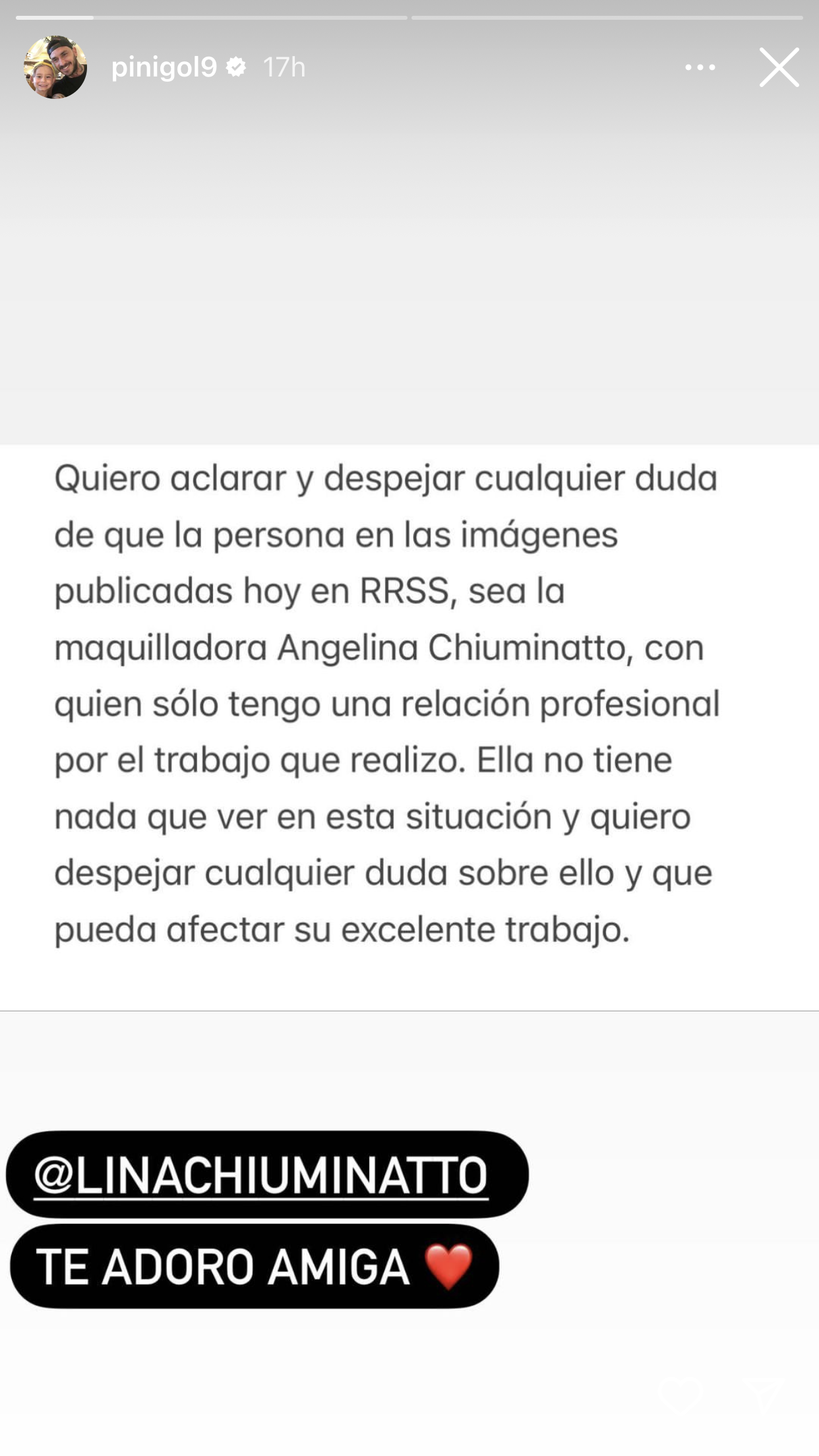 Por medio de su cuenta de Instagram, el ex seleccionado nacional publicó una historia para "aclarar y despejar cualquier duda" respecto a las viralizadas imágenes, descartando la participación de Chiuminatto.