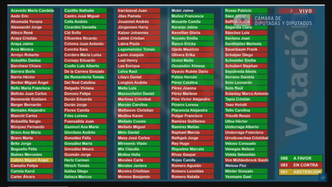 De todas maneras, esta propuesta fue sometida a votación y se requería de un total de 93 votos a favor para poder conseguir su aprobación en Sala. Pasadas las 22:00 horas, se dio paso al sufragio que terminó por rechazar esta iniciativa con 70 votos a favor, 70 en contra y 12 abstenciones.