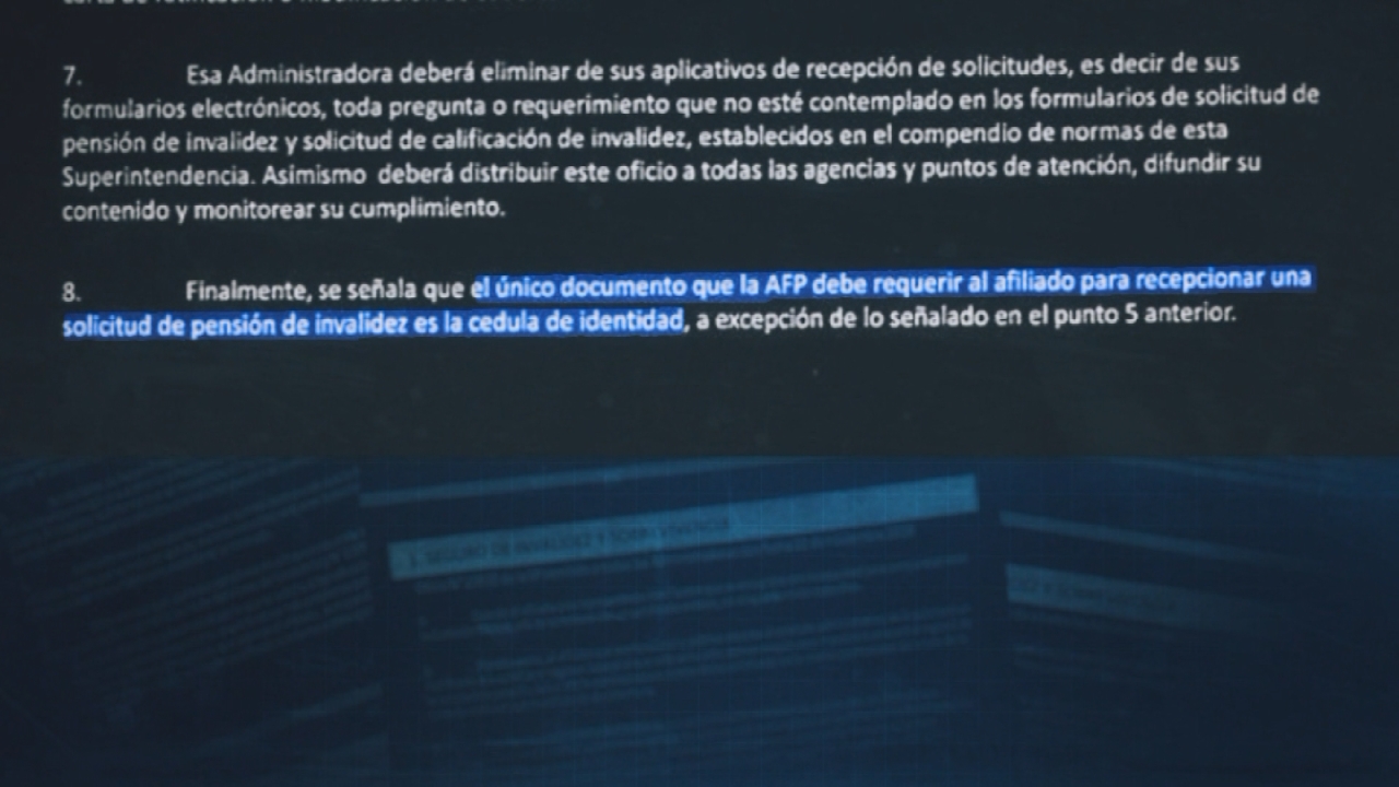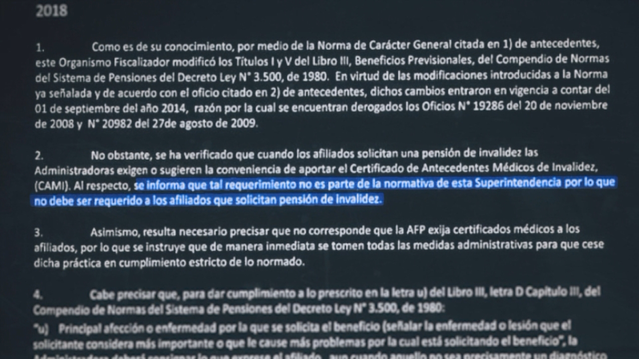 Y segundo, le pidieron que su médico llenara el Certificado de Antecedentes Médicos de Invalidez (CAMI). Sin embargo, según el abogado experto en seguridad social Yamir Rivera se encuentra proscrito por la Superintendencia de Pensiones.