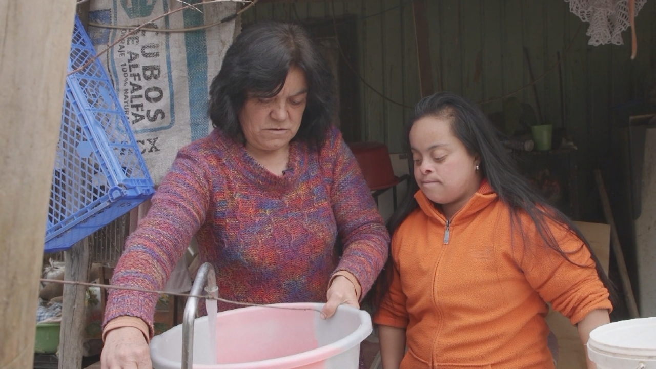 Nancy Saavedra vive en el campo de Puchuncaví. Desarrolla sus labores cotidianas junto a su hija Vanesa, de 28 años, quien fue diagnosticada con Síndrome de Down.